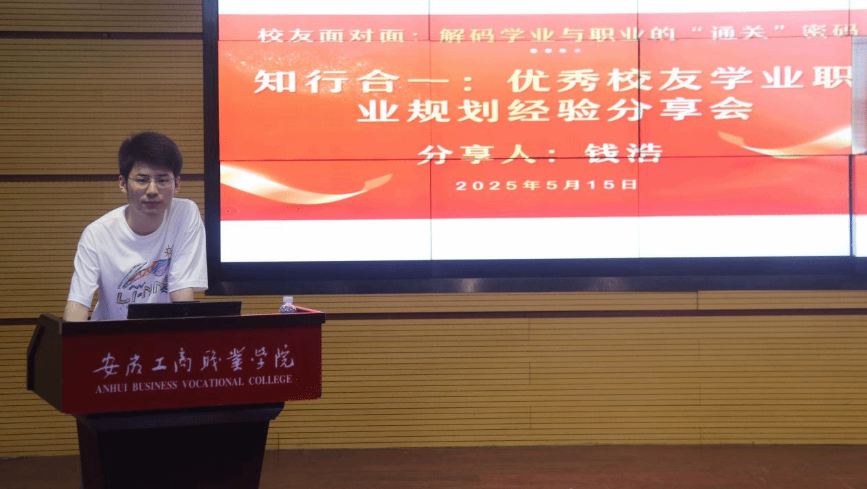 5 月 15 日,信息工程学院特邀 2019级优秀毕业生钱浩校友重返母校,开展 “知行合一:优秀校友学业职业规划经验分享会”,为在校学子带来一场关于成长、奋斗与规划的深度交流,旨在引导学生科学做好学业规划和职业规划,以榜样力量激励前行。信息工程学院计算机网络技术专业、大数据技术专业等350余名学生参加此次分享会。