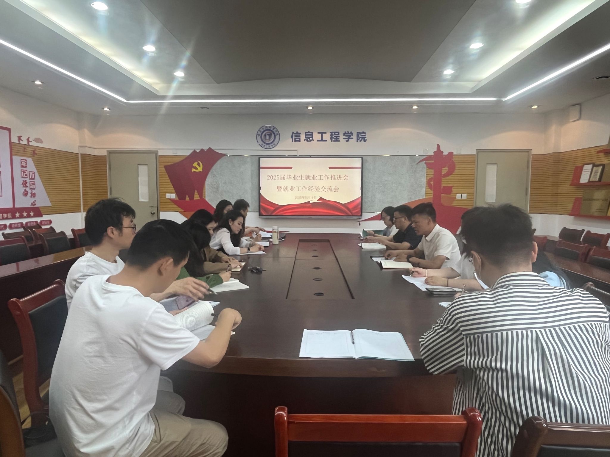 为全力推进2025届毕业生高质量充分就业,进一步巩固辅导员工作室建设实效,5月16 日,信息工程学院召开2025届毕业生就业推进会暨就业工作经验交流会。学院全体辅导员参会,会议由学院党总支副书记陈夺主持。