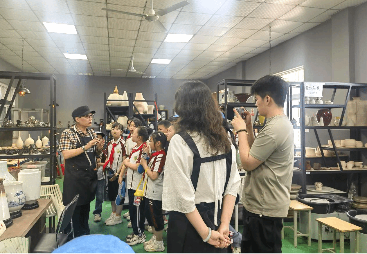 近日,我校定点帮扶村安庆市太湖县城西乡大龙村55位小学生走进合肥,来到安徽工商职业学院信息工程学院开展职业启蒙主题活动。作为活动的精彩篇章,城西乡大龙村的小学生们踏入工艺美术研究所大师工作室,领略了中华传统陶瓷技艺的独特魅力。