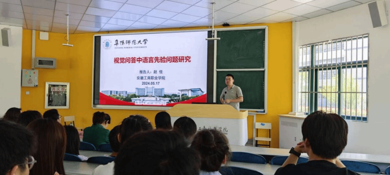 2024年5月17日下午,阜阳师范大学计算机与信息工程学院赵佳博士给我校信息工程学院师生做主题为《视觉问答中语言先验问题研究》的学术讲座。参加讲座的还有阜阳师范大学计算机与信息工程学院研究生秘书韩立国博士。我校2023级软件工程联合培养(专升本)专业全体学生、相关专业的专科学生和信息工程学院部分教师聆听了讲座。