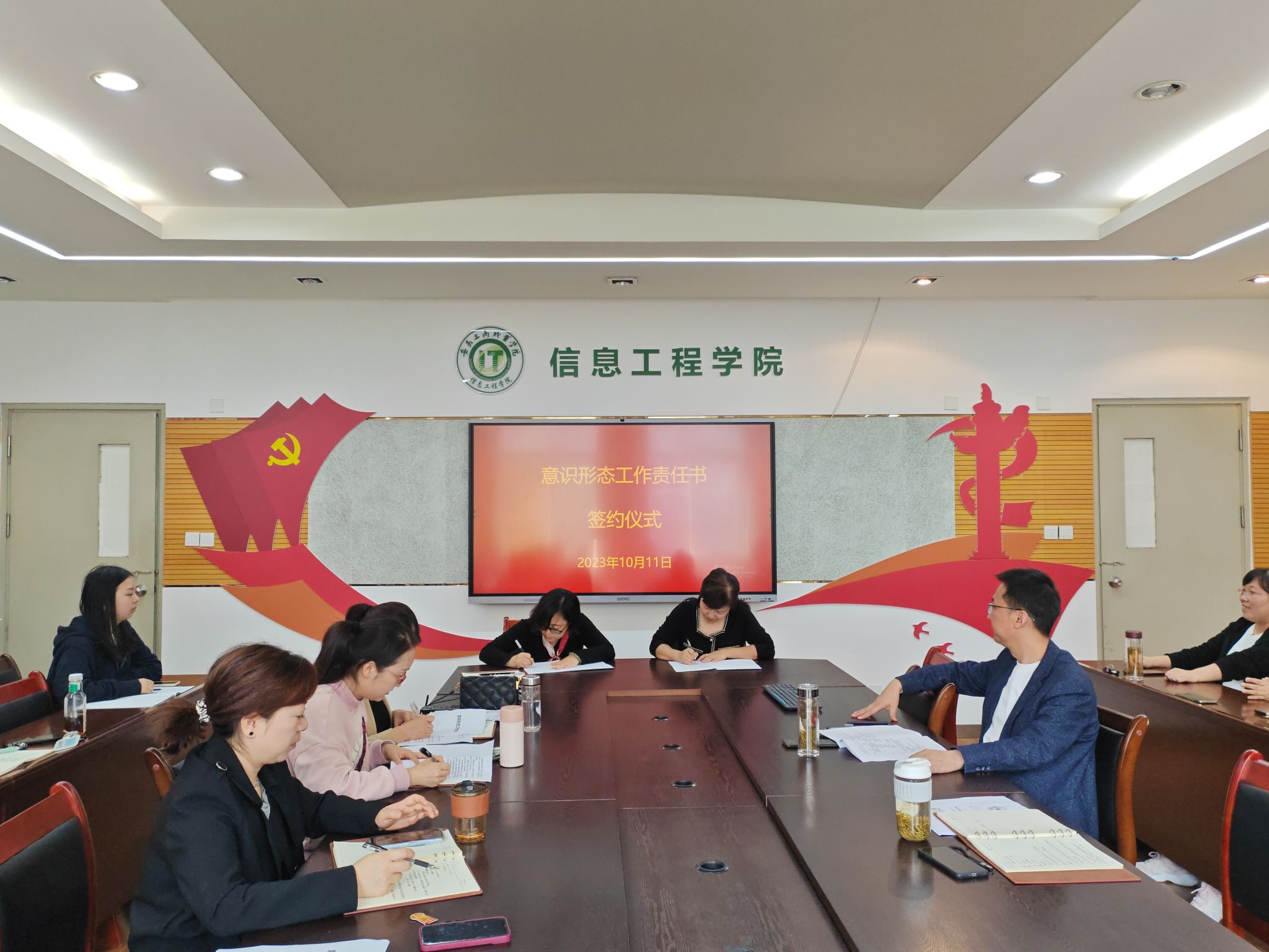 会上,学院党政领导与部分党支部书记、教研室主任举行了《意识形态工作责任书》签约仪式。(撰稿:彭梦冉 审核:张静雯)
