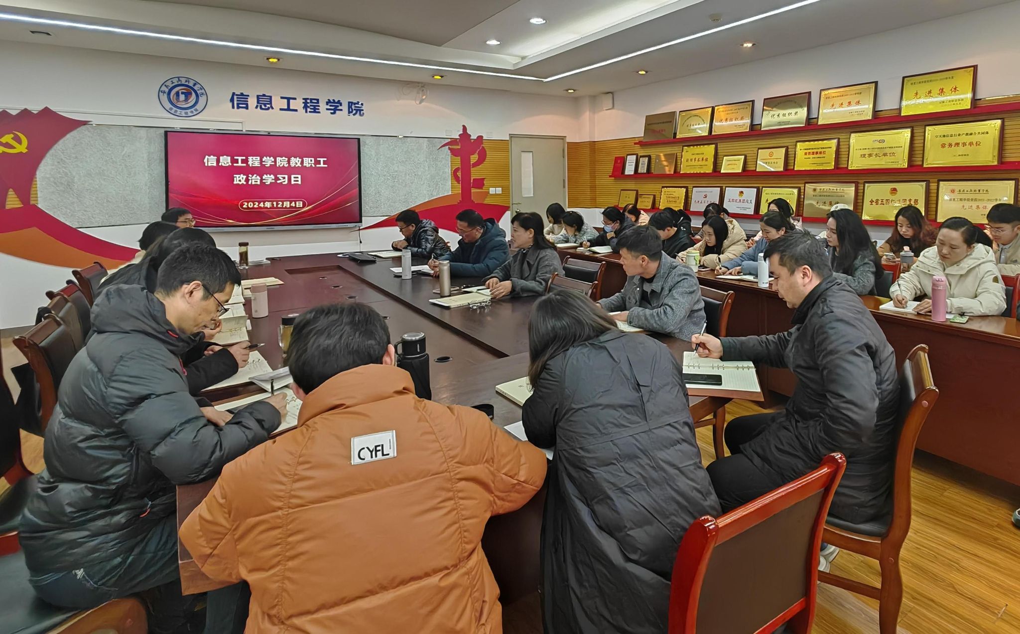 根据校党委统一部署,信息工程学院党总支于12月4日下午在党员活动室开展教职工政治学习日活动,全体教职工参加会议,会议由党总支书记张静雯主持。