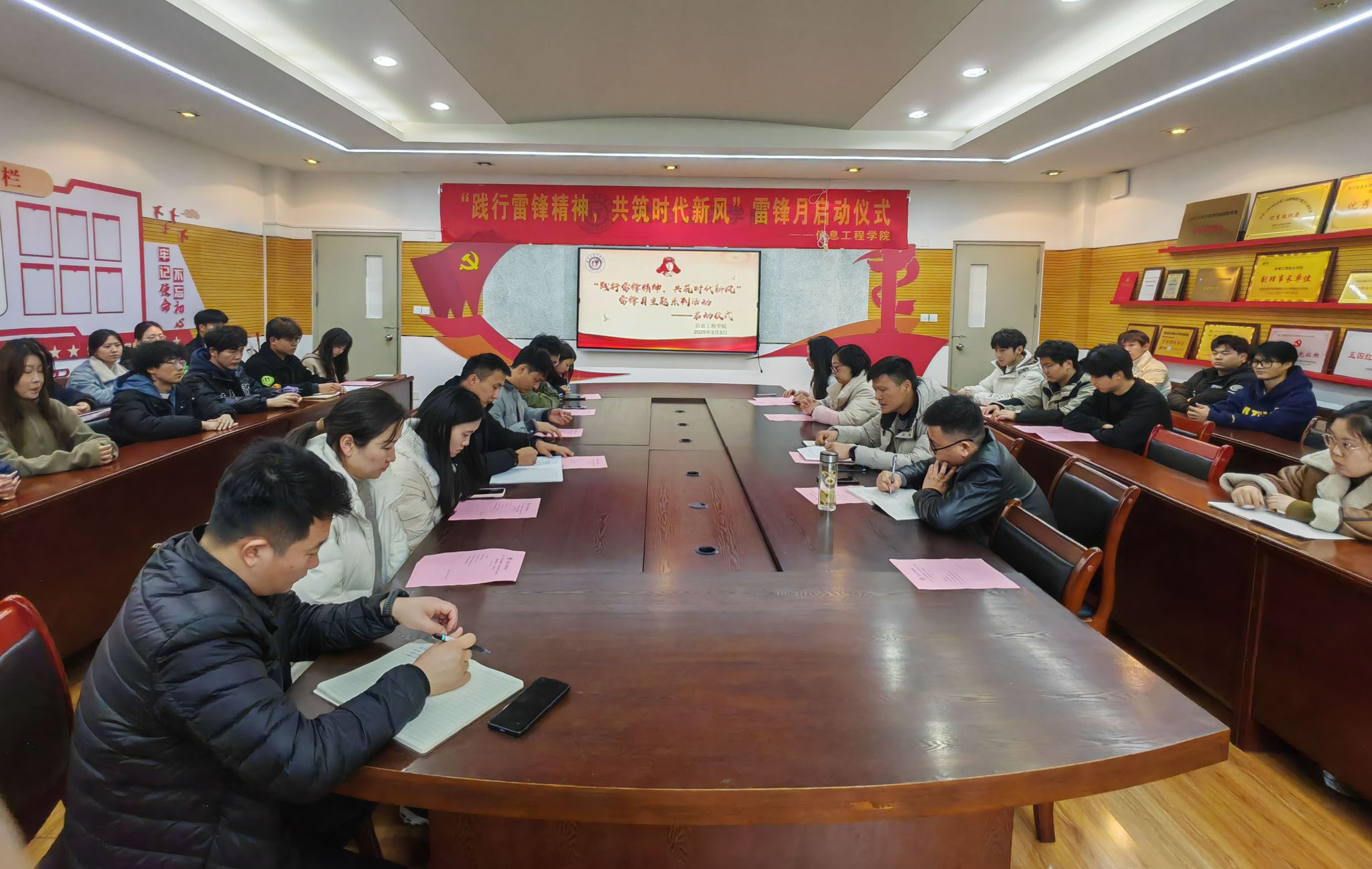为弘扬雷锋精神,增强新时代大学生的社会责任感,进一步推动学院学雷锋志愿服务活动常态化、制度化,掀起全院学雷锋志愿服务活动热潮。3月3日中午,在全国第62个“学雷锋纪念日”来临之际,信息工程学院隆重举行了“践行雷锋精神,共筑时代新风”雷锋月主题系列活动启动仪式。信息工程学院党总支副书记陈夺、全体专职辅导员和部分团干参加了此次活动。