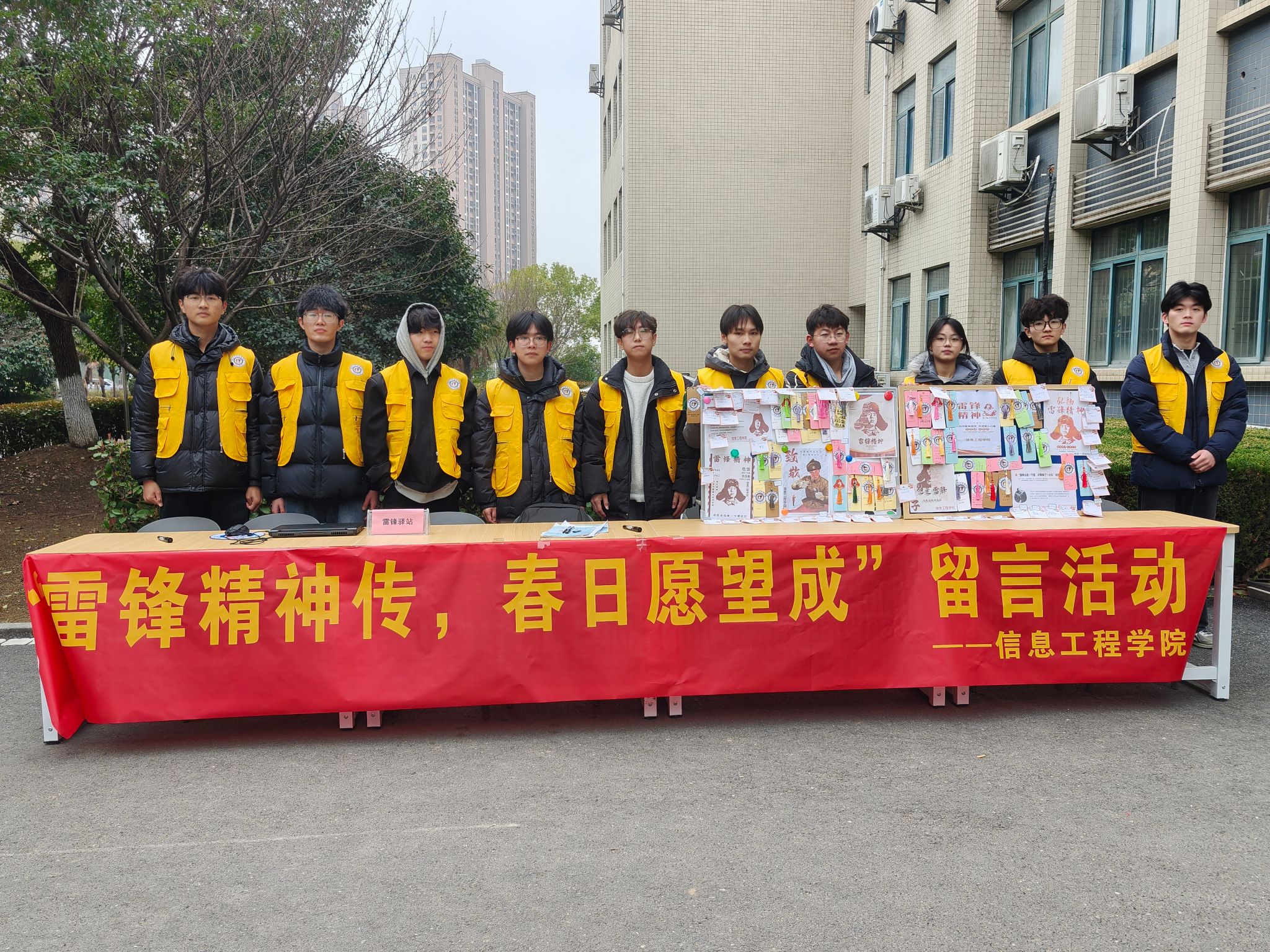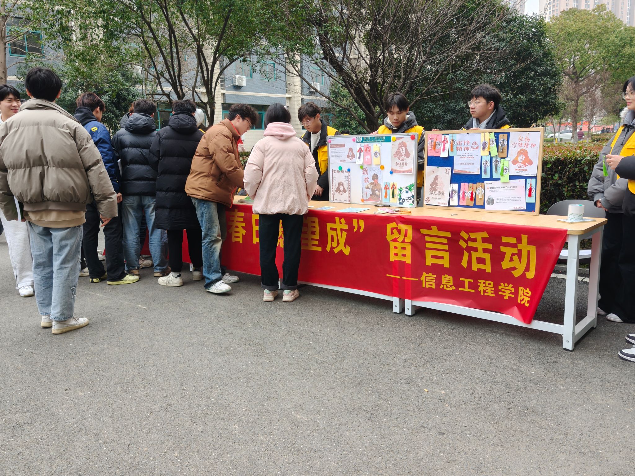 3月5日,正值雷锋纪念日,信息工程学院在校园内举办了“雷锋精神传,春日愿望成”主题留言活动,活动以“科技 + 公益”为特色,通过互动留言、精准圆梦和专业志愿服务,吸引了众多师生踊跃参与,生动诠释了“奉献、友爱、互助、进步”的志愿服务精神。