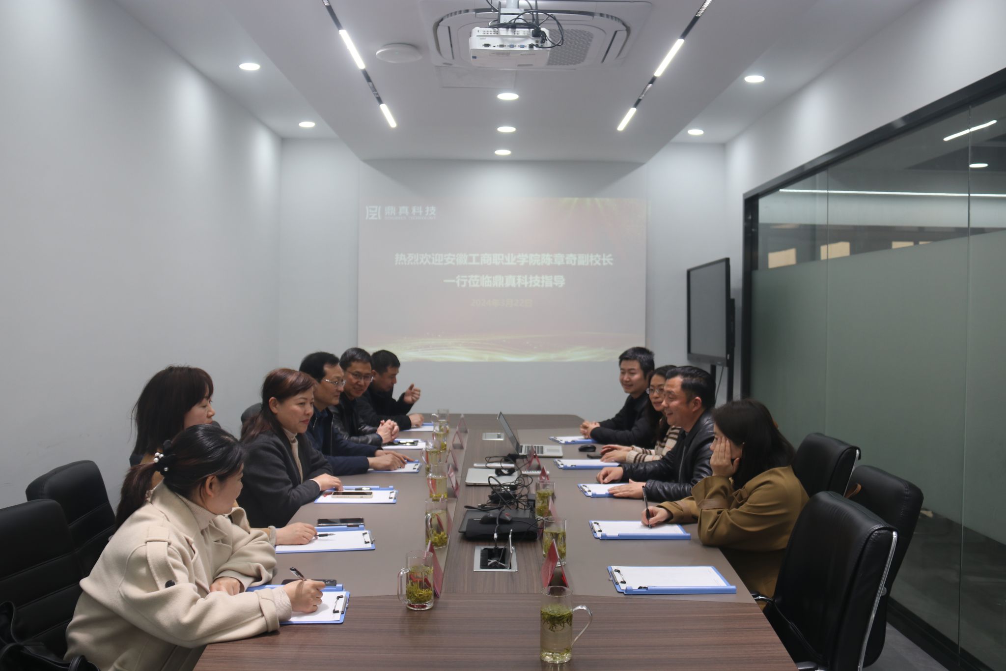 陈章奇一行还走访了合肥鼎真信息科技有限公司。详细了解了企业基本情况和岗位资源,为下一步毕业生供需对接建立了良好的合作关系。