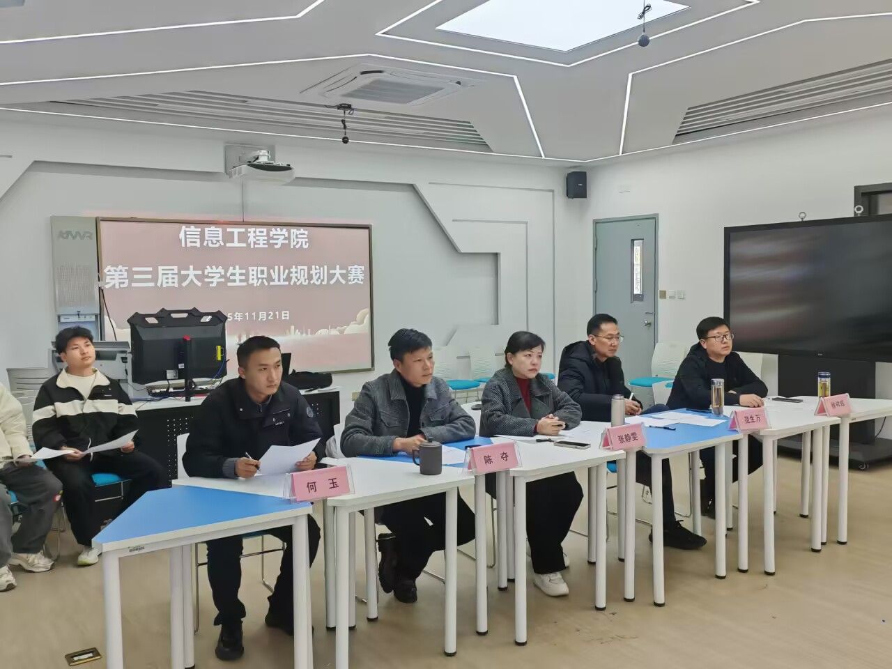 11月21日,信息工程学院407实训室内气氛热烈,一场以“筑梦青春志在四方,规划启航职引未来”为主题的第三届全国大学生职业规划大赛学院选拔赛在此隆重举行。学院党政领导、专业教师及辅导员组成评审团全程参与,共同见证学子们以规划为笔,描绘职业蓝图的青春风采。