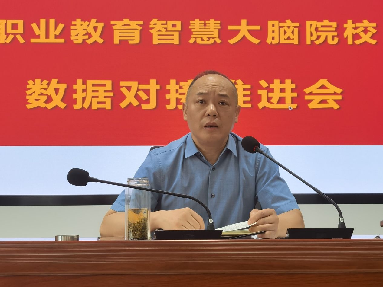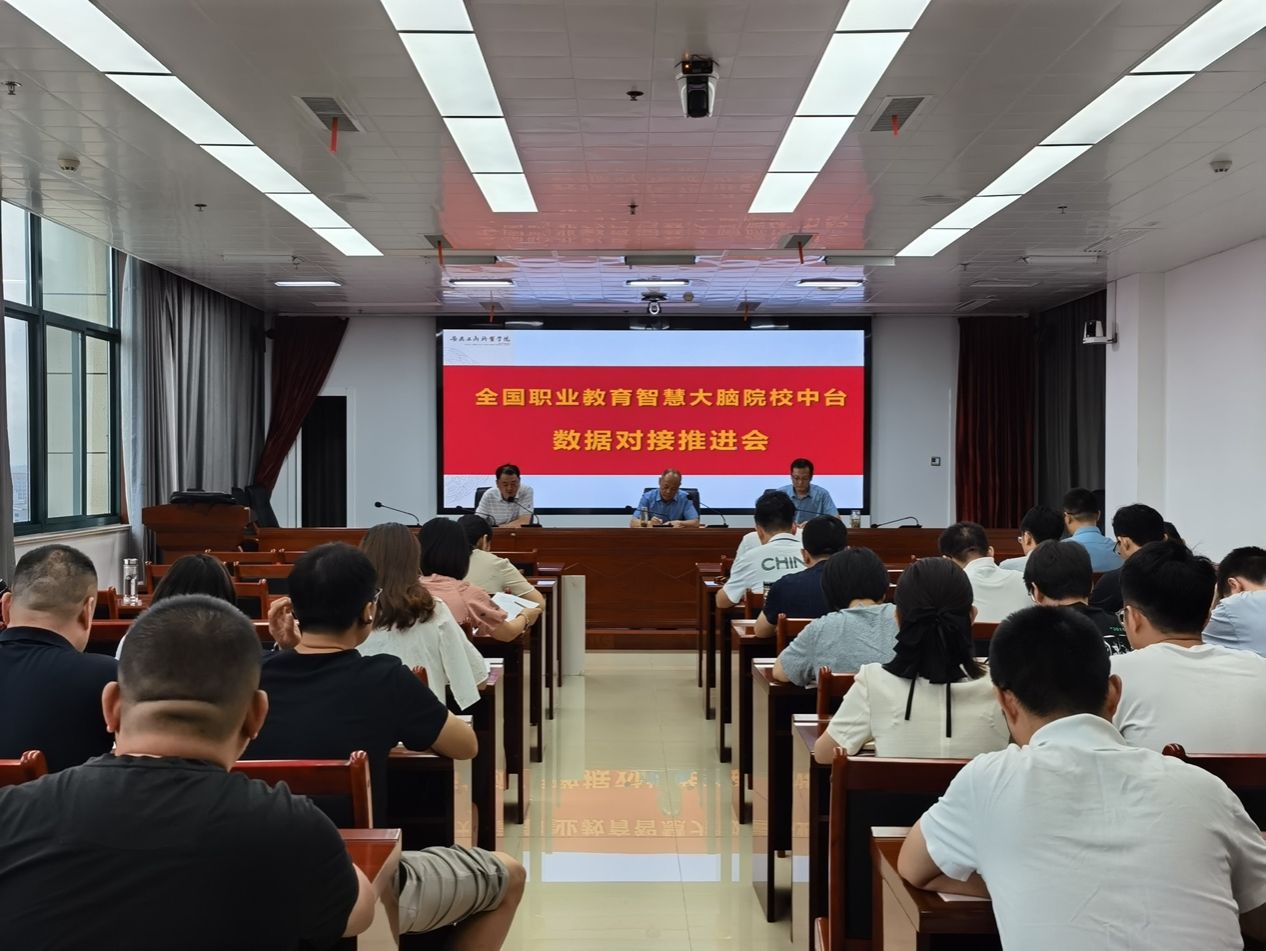 为贯彻落实教育数字化战略⾏动,提升职业教育数字化⽔平,进⼀步推动全国职业院校数字校园建设试点工作,全面推进主题教育走深走实,7⽉30⽇上午,学院在综合楼二号会议室召开了全国职业教育智慧⼤脑院校中台数据对接⼯作推进会。院党委书记齐建平,党委委员、副院⻓陈章奇,党委委员、发展规划与质量管理处处长、管理学院院长朱小龙及相关部⻔主要负责⼈和数据填报⼈员参加了会议。