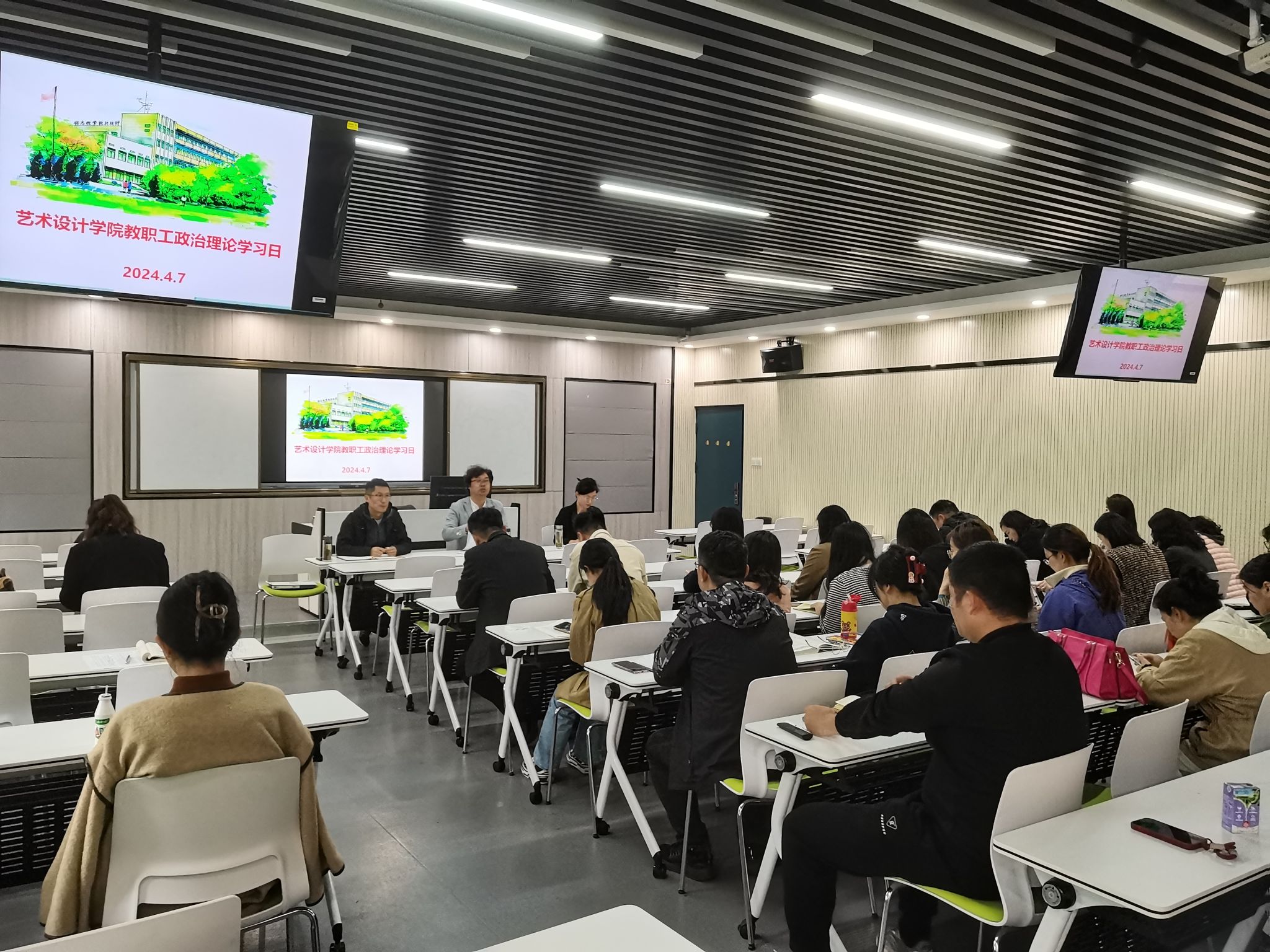 4月7日下午,艺术设计学院党总支在致知楼Z204智慧教室召开四月份教职工政治理论学习会议,集体学习贯彻习近平总书记在中共中央政治局第十二次集体学习上的重要讲话精神、习近平总书记在中央党校中青年干部培训班开班之际作出的重要指示精神、习近平总书记在湖南考察时的重要讲话精神,并开展师德师风建设和2023年度考核工作。校党委委员、党委宣传统战部部长、艺术设计学院党总支书记孔成,艺术设计学院党总支副书记、院长魏芬,艺术设计学院党总支副书记张乐及全体教职工参加会议。
