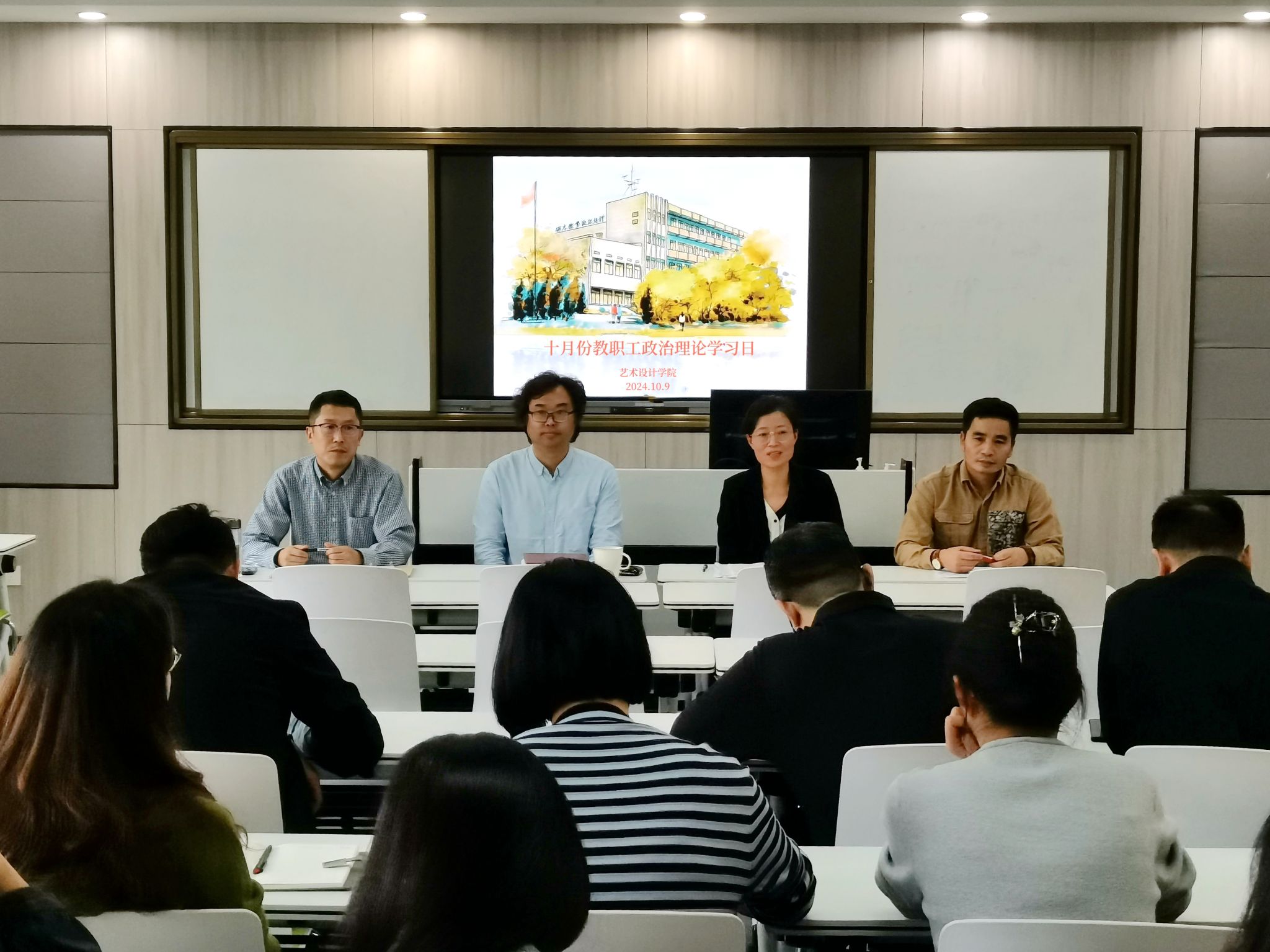 10月9日下午,艺术设计学院党总支在致知楼204智慧教室召开十月份教职工政治理论学习会议,校党委委员、党委宣传统战部部长、艺术设计学院党总支书记孔成,艺术设计学院党总支副书记、院长魏芬,党总支副书记张乐,副院长邱志斌及全体教职工参加会议。