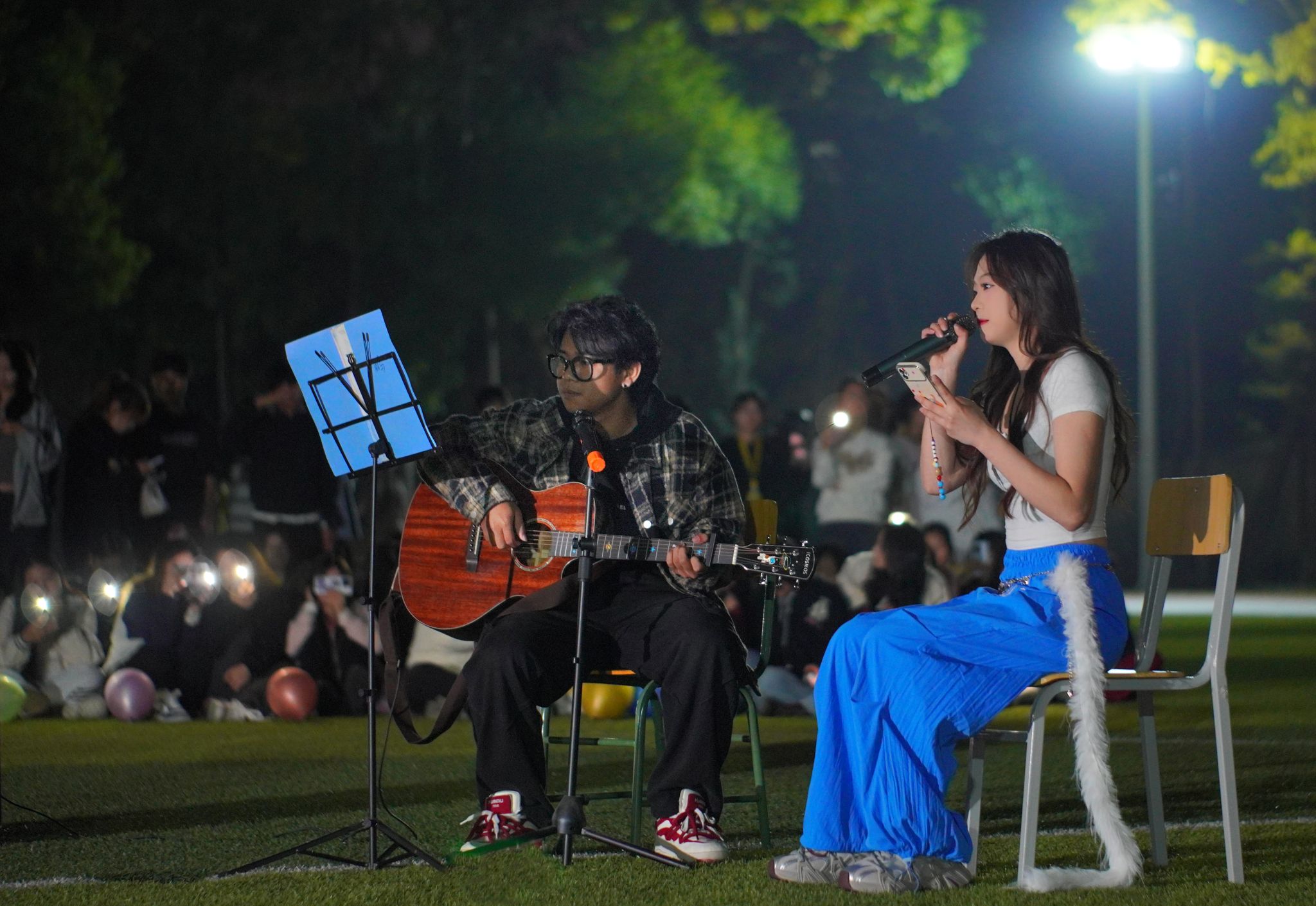晚风涌动乐符交织,11月13日晚一场别开生面的“草地音乐节”在庐阳校区足球场激情上演。此次活动由院音乐协会和舞蹈协会联合举办,不仅为同学们搭建一个展示才艺、放松身心的舞台,更是展示了艺院学子的活力和风采,传递了欢乐与温情。