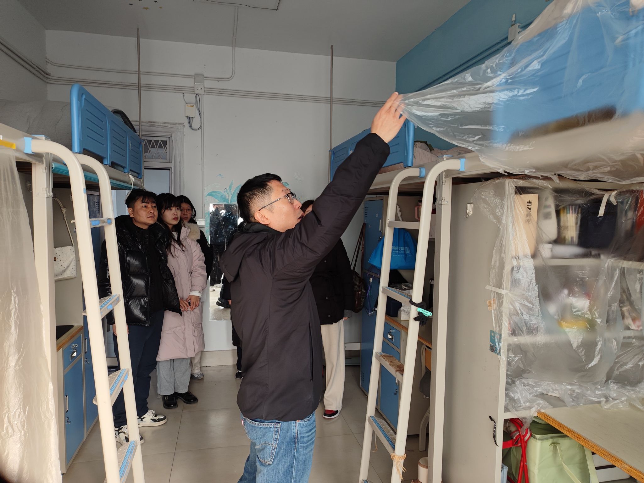 假期将至,为进一步加强校园安全管理,做好校园各重点部位的安全隐患排查治理,建设好平安校园。1月14日,艺术设计学院党总支副书记张乐带领全体专兼职辅导员开展假期离校安全检查。