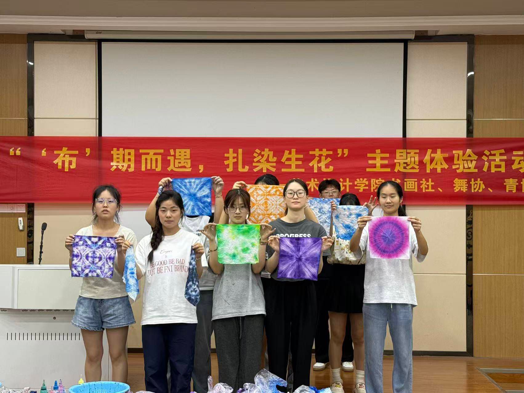为弘扬劳动精神,传承中华优秀传统文化,丰富广大青年学子的校园文化生活,5月22日下午,由书画协会、舞蹈协会、青年志愿者协会共同组织开展“‘布’期而遇 扎染生花”主题体验活动。活动吸引了众多同学前来参与,共同感受扎染艺术的独特魅力。