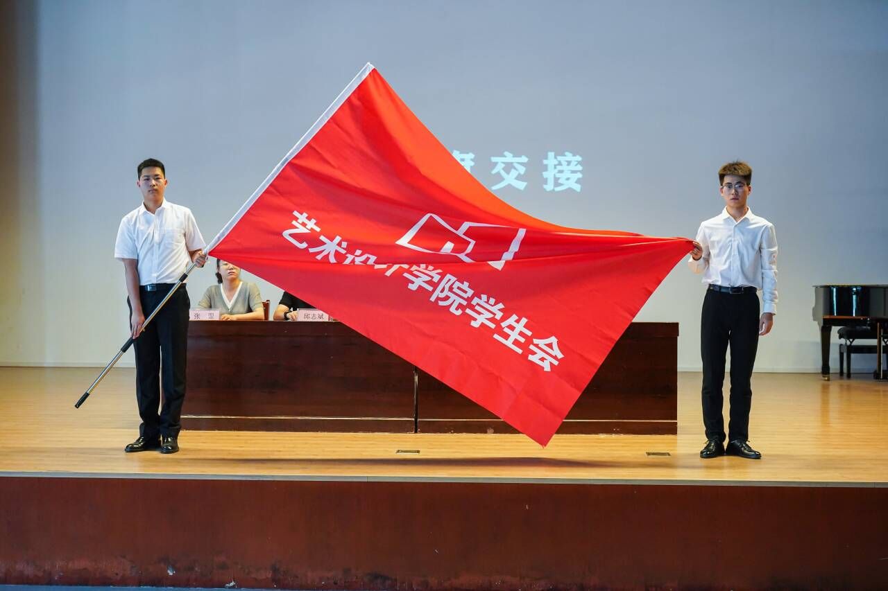 会上,上任学生会主席23级建筑室内设计2班陆金庄做了发言,汇报了过去一年学生会及社团的工作成果,表达了对学院的支持和感谢;新任学生会主席团代表24级产品艺术设计1班王瑾程表示将继承优良传统,锐意创新,未来将以服务同学为宗旨,搭建师生沟通的桥梁,通过举办多元化的学术活动和创意赛事,激发校园活力。王瑾程还提出将重点关注学生权益,推动信息化服务平台建设,让每位同学的声音都能被听见。随后,两届学生会代表完成会旗交接,象征责任与使命的传承。