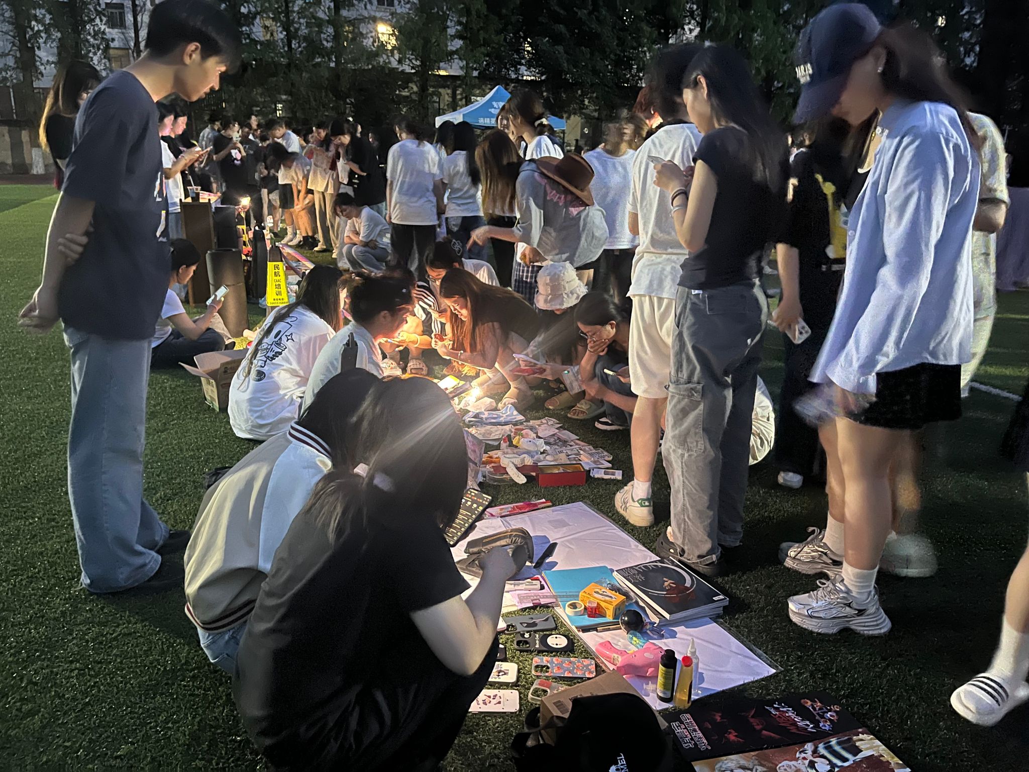 活动现场,近三十余个摊位有序排列,宛如一条充满故事的创意长廊。毕业生们精心布置自己的摊位,书籍、衣物、文具、手工艺品等琳琅满目,承载着他们的校园青春记忆,静待新主人开启新的故事。