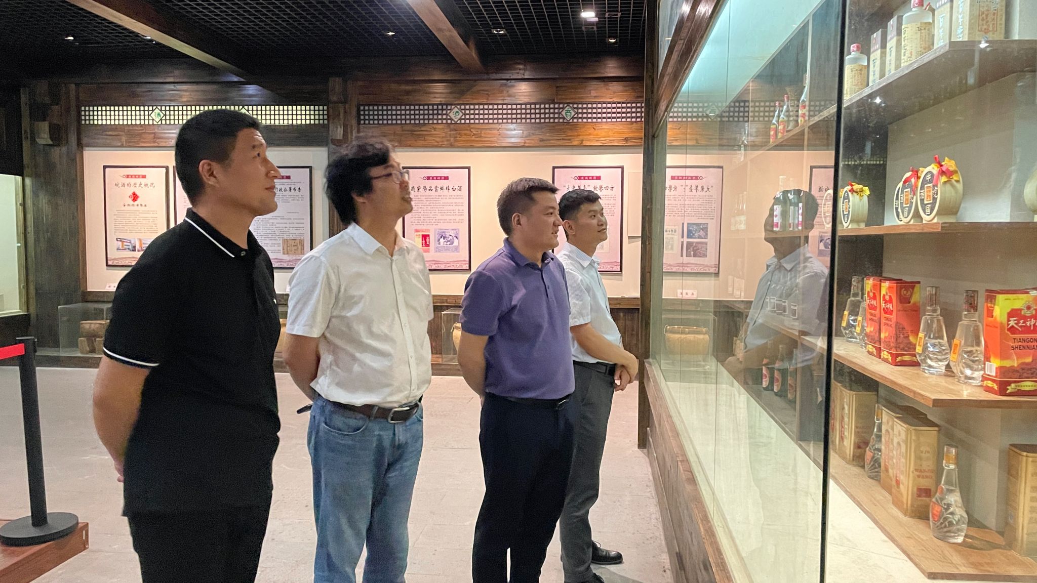 首先,孔成一行人参观了皖酒文化博物馆,听取姜克对皖酒的历史文化的介绍,重点介绍了历年推出皖酒的新品品牌策划、包装设计和广告设计。