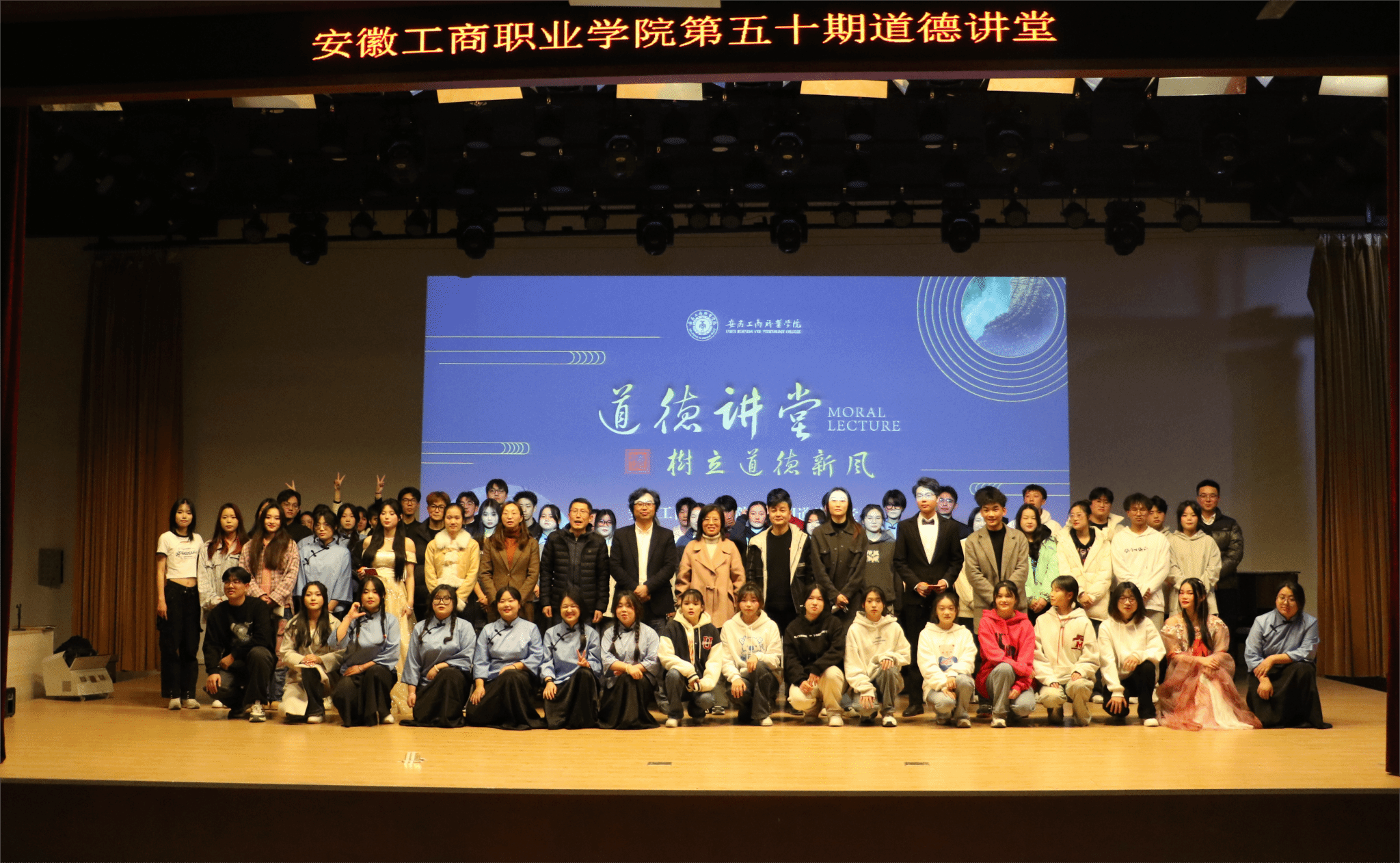 12月6日晚,由校党委宣传统战部主办、艺术设计学院承办的第五十期道德讲堂在庐阳校区时间剧场举行。校党委委员、党委宣传统战部部长、艺术设计学院党总支书记孔成、党总支副书记、院长魏芬、副书记张乐及全体辅导员和师生500余名同学一起参加了本次活动。