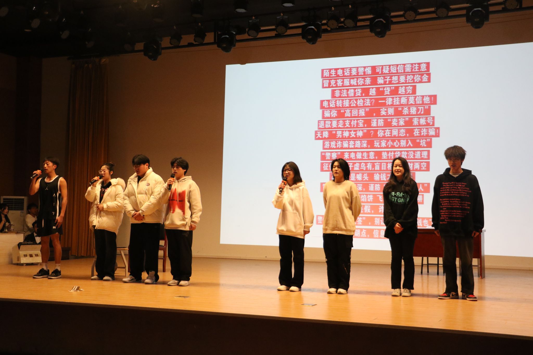 辩论协会的情境剧《防诈骗》包袱不断,用情景再现的方式让同学们识破各种诈骗手段,教育、引导同学们擦亮双眼,增强反诈意识,培养法治思维,成为尊法、学法、守法、用法的先锋。