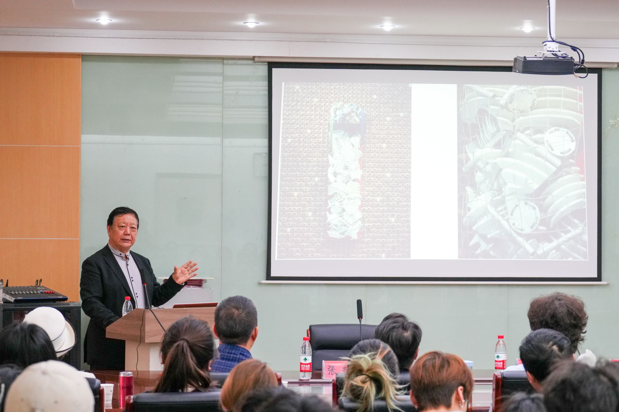 值得一提的是,会议前,全体与会人员还参加了由安徽师范大学美术学院与安徽省美术家协会设计艺委会联合举办的学术报告会。会上,特邀清华大学教授、博导张夫也作了题为《走向何方——新时期设计的发展趋势》的学术报告,为与会人员带来了前沿的设计理念和思考。