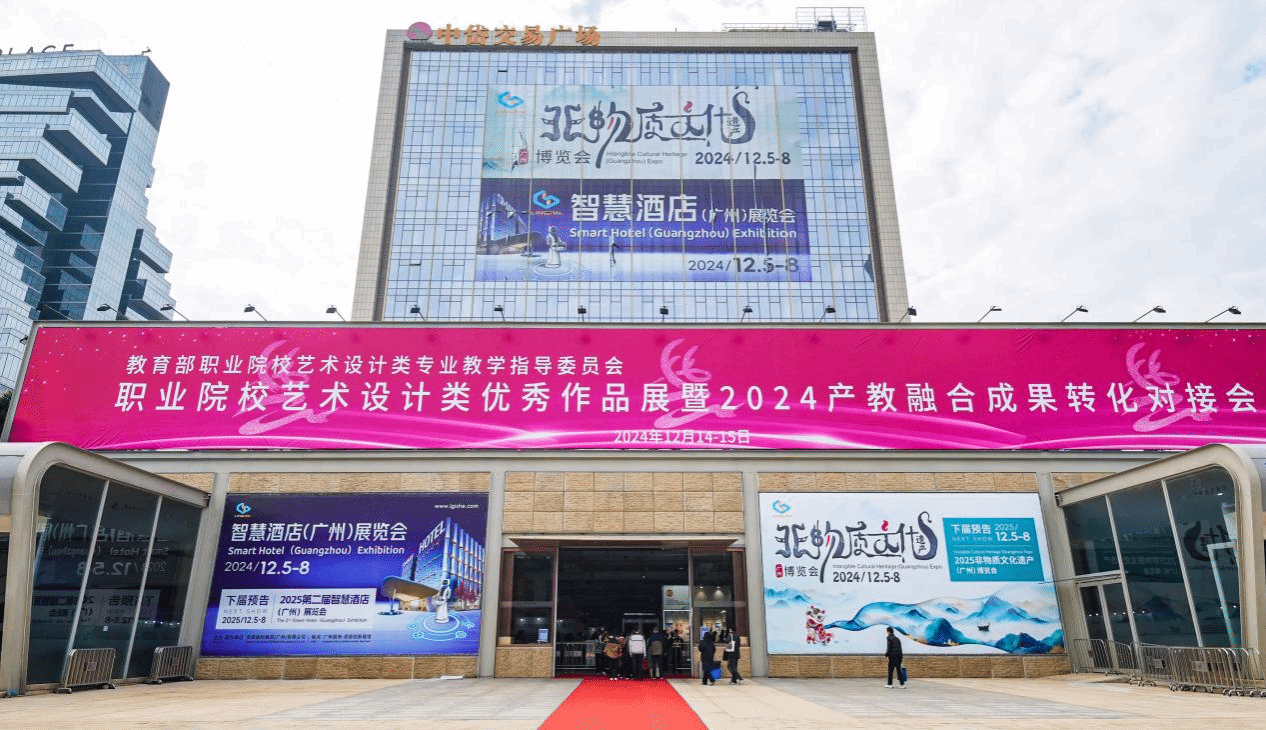 12月13日-16日,教育部职业院校艺术设计类优秀作品展暨2024年产教融合成果转化对接会在广州琶洲中岱交易广场成功举办。此次作品展暨对接会,是教育部为全国职业院校艺术设计类专业搭建的展示以教促产、以产助教、产教融合的综合成果的高质量平台。艺术设计学院副院长邱志斌、产品教研室教师韦鸾鸾参加了本次活动。