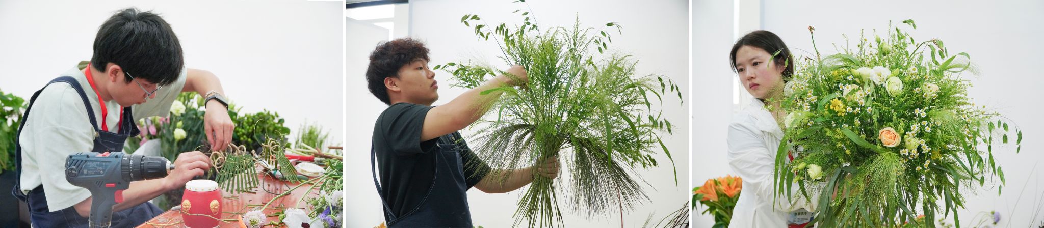 为全力备战2025年9月在河南郑州举办的中华人民共和国第三届职业技能大赛,全面提升参赛队伍的专业技能与艺术素养,6月6日至7日,由安徽工商职业学院与校企合作单位合肥会心花卉有限公司联合承办的安徽省集训队选拔赛在我校花艺实训基地顺利举行。安徽工商职业学院党委委员、艺术设计学院党总支书记、安徽省技能大赛花艺赛项专家组组长孔成担任集训选拔赛裁判长,艺术设计学院教师韦鸾鸾、翟雨娟,会心花卉公司郑贤永及安徽职业技术学院鲍阿赛共同担任裁判。来自省内三支优秀队伍的选手经过为期14天的集中训练与严格考核,圆满完成选拔任务,为后续冲刺全国大赛奠定坚实基础。