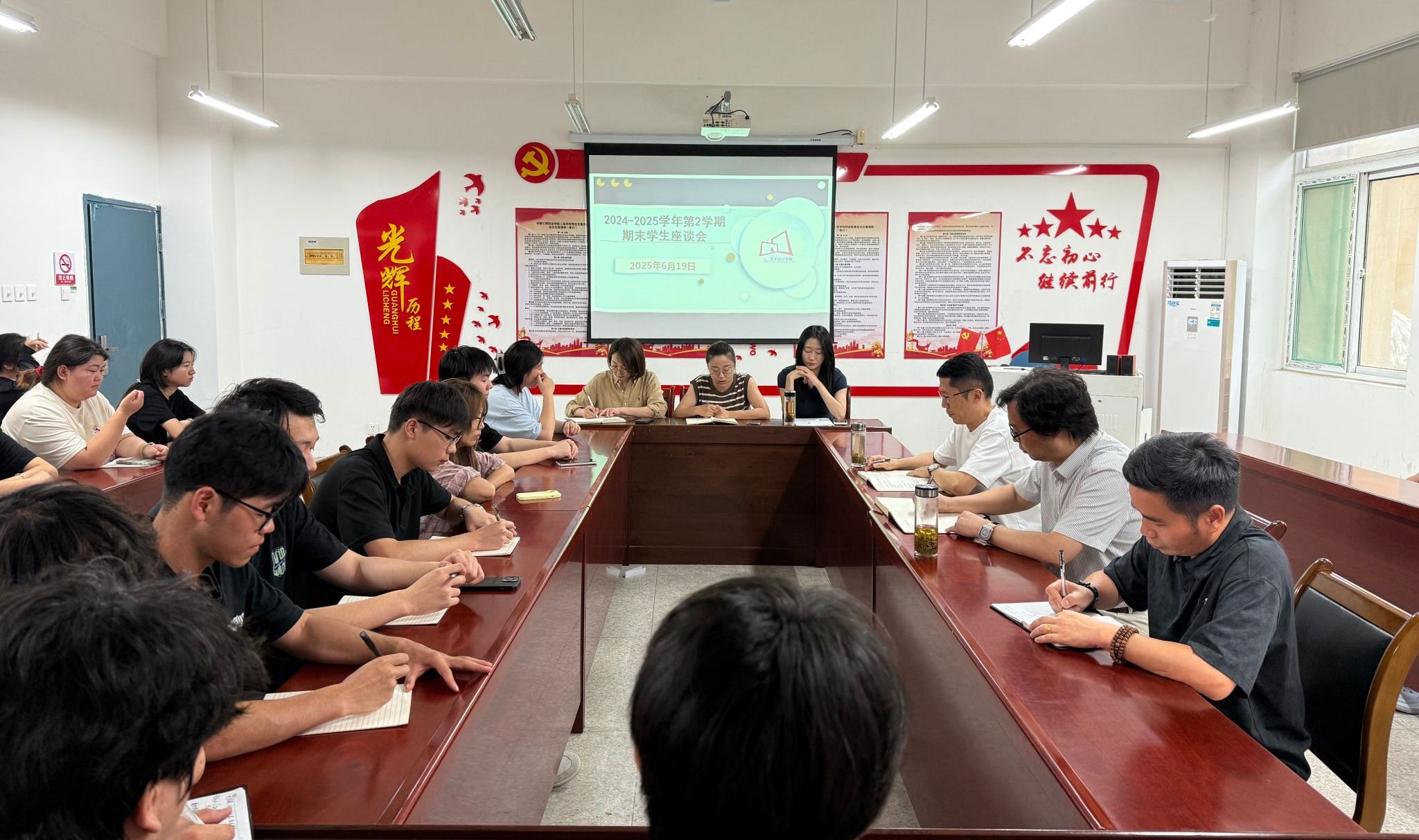 为深入了解学生思想动态与发展需求,倾听学子心声,凝聚育人智慧,6月19日下午,艺术设计学院在致知楼党员活动室成功举办2024-2025学年第二学期学生座谈会。校党委委员、党委宣传统战部部长、学院党总支书记孔成,党总支副书记张乐,副院长邱志斌,相关科室负责人,各班级辅导员及学生代表参加本次座谈会。会议由张乐主持。
