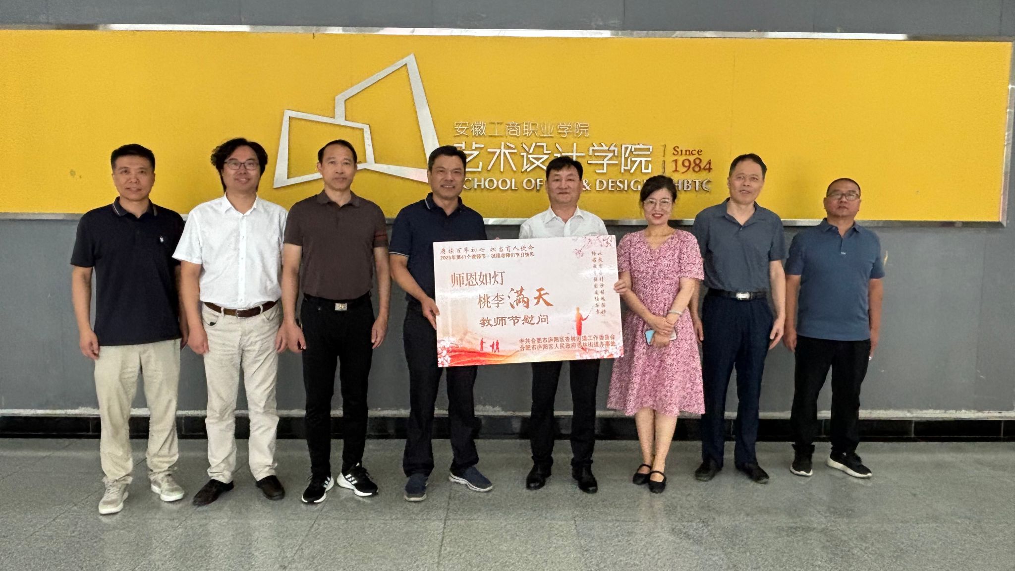9月10日上午,在第41个教师节来临之际,合肥市庐阳区杏林街道党工委书记石际一行来到庐阳校区,开展教师节慰问活动。学校党委副书记陈行参加活动,艺术设计学院党政领导陪同参与。