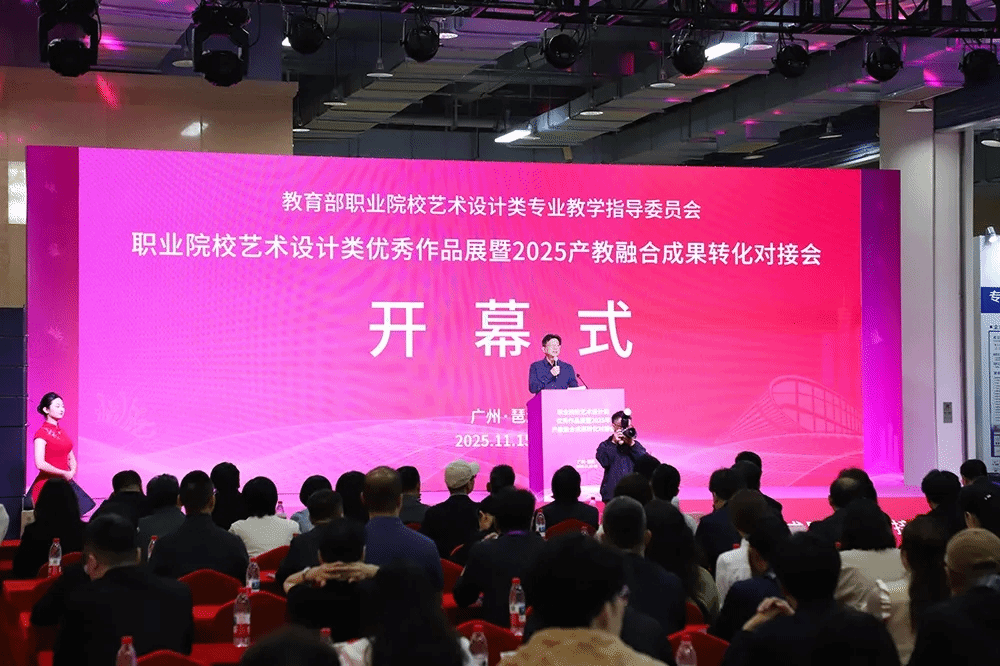 11月14日至16日,“全国职业院校艺术设计类优秀作品展暨2025年产教融合成果转化对接会”于广州琶洲灵感创新展馆顺利召开。本次活动由教育部职业院校艺术设计类专业教学指导委员会主办。我校艺术设计学院教师赵中华、范韬赴广州参展,并与来自全国的同行进行了深入交流。