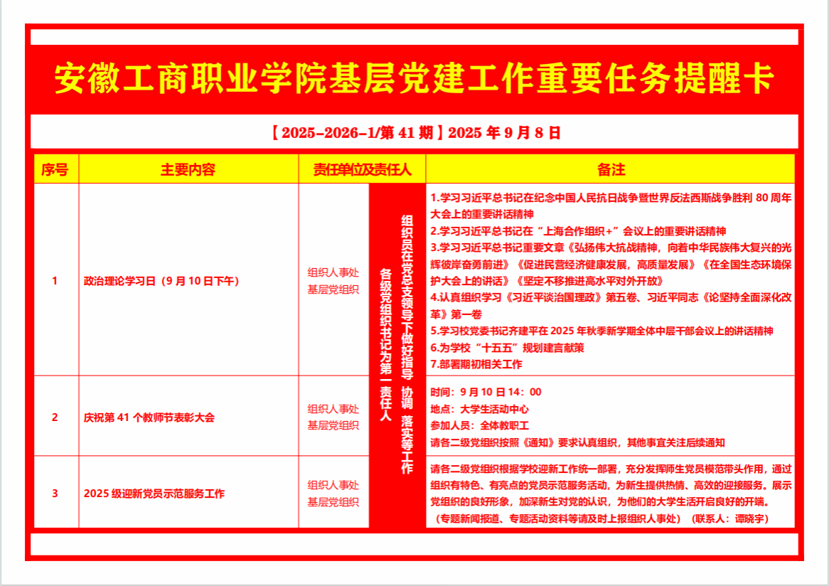 党建工作重要任务提醒卡【2025-2026-1第41期】